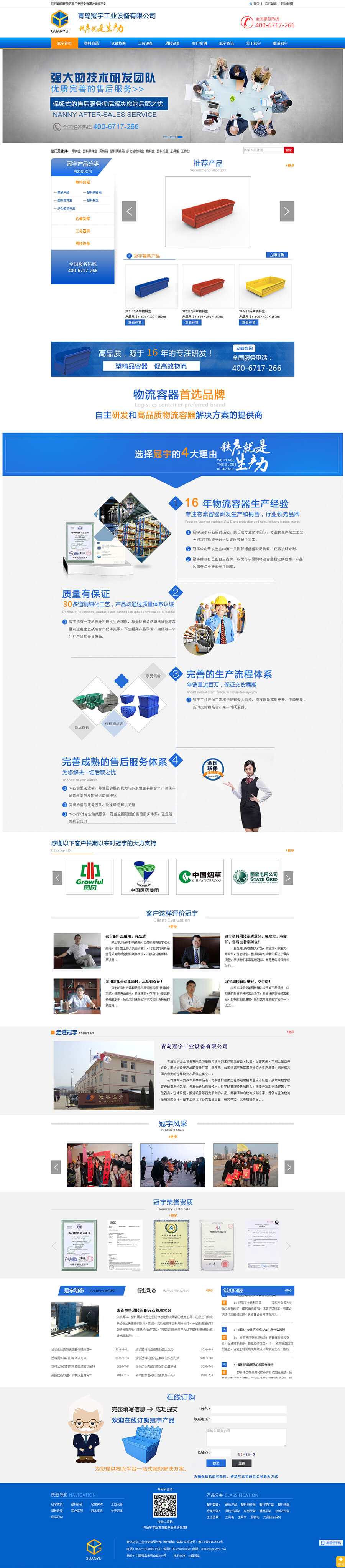 公司介紹:青島冠宇工業(yè)設(shè)備有限公司是國內(nèi)較早的生產(chǎn)物流容器、托盤、倉儲貨架、車間工位器具設(shè)備、搬運設(shè)備等產(chǎn)品的專業(yè)廠家,多年來,公司根據(jù)市場需求逐步擴大生產(chǎn)規(guī)模,已經(jīng)成為國內(nèi)倉儲物流產(chǎn)品供應(yīng)商之一。公司擁有一支多年從事產(chǎn)品設(shè)計與制造的高級工程師組成的專業(yè)設(shè)計隊伍,多年來冠宇以客戶的需求為導(dǎo)向,依靠先進(jìn)的物流技術(shù)、科學(xué)的管理經(jīng)驗和理念,逐步開發(fā)出物流容器、工位器具、倉儲設(shè)施、搬運設(shè)備等四大系列的產(chǎn)品,并聘請知名物流規(guī)劃專家,提供專業(yè)的物流系統(tǒng)方案設(shè)計,基本上滿足了各類制造企業(yè)、研究單位、大專院校對倉儲物流產(chǎn)品和方案的專業(yè)需求。